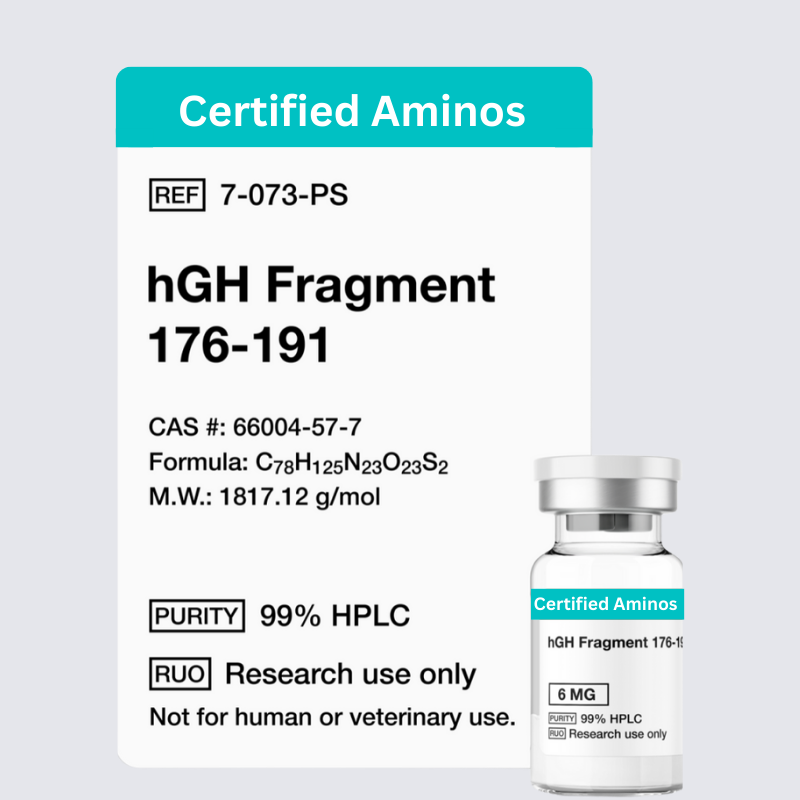 hGH Fragment 176-191 is a synthetic peptide derived from human growth hormone (hGH). Often called the “lipolytic fragment,” it is known for its ability to target fat loss while avoiding many of the side effects typically associated with hGH. Unlike its parent molecule, this fragment promotes fat burning without significantly affecting insulin sensitivity or increasing long bone growth, making it a valuable tool in metabolic research.